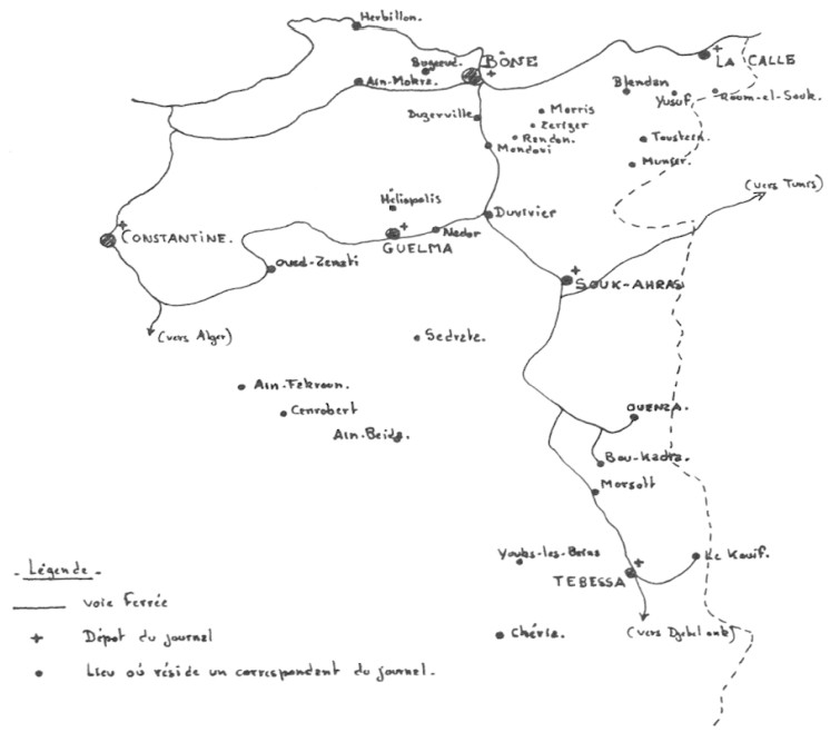 Le 18 janvier 1886, à Bône paraît le premier numéro d'un nouveau journal : La Démocratie Algérienne. Dans cette ville, la seconde du département de Constantine, par la population (1) et dont l'activité économique se développe sous l'impulsion du trafic portuaire et de la mise en valeur de la plaine de la Seybouse, la presse est déjà ancienne et particulièrement vivante (2). Elle compte treize journaux et revues dont La Seybouse, doyenne de la presse locale qui paraît depuis 1844. Le Petit Bônois organe du parti radical et La Petite Revue Agricole organe des intérêts viticoles de l'Est algérien et de la Tunisie, dirigée par Jules Royer, propriétaire-viticulteur à l'Allélick dans la banlieue bônoise. Quelques années plus tard, le 24 décembre 1890, dans un article intitulé "A nos lecteurs", La Démocratie - est ainsi que le journal est désigné habituellement - se félicite de cette importance de la presse locale qui, compte alors dix-huit titres :