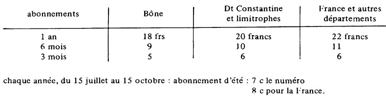 "Avec l'instruction laïque et obligatoire tous ceux qui savent lire considèrent comme un devoir de se tenir au courant des événements. De là une abondance de publications périodiques qui font de notre cité une des plus avancées de la colonie. Loin de déplorer cette pousse de feuilles nous nous en félicitons. Elle est le signe caractéristique du degré intellectuel atteint par nos concitoyens. Le soleil luit pour tout le monde ici. Les nombreux journaux trihebdomadaires bônois comme les quotidiens ont leur raison d'être".