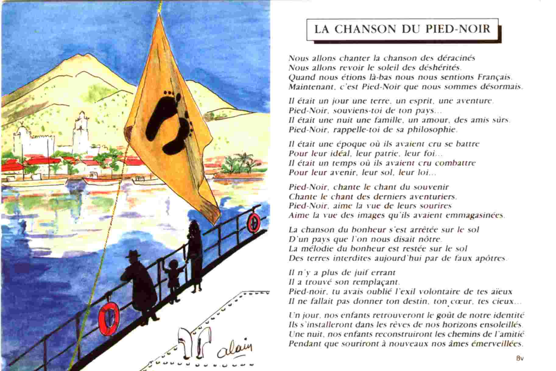 J’ai mis en musique un poème « La Chanson du Pied Noir », que j’ai écrit il y a bien longtemps, et je viens d’en réaliser un CD