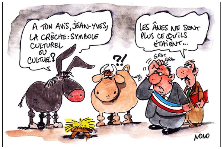 Voyez-vous, Noël n'est pas l'anniversaire de la naissance du Père Noël ( je suis désolé si je casse ici une croyance ancrée en vous ) mais bien celle de ce Jésus. Interdire une crèche sans interdire toute manifestation publique de cette fête est aussi stupide que si vous autorisiez la fête de l'andouillette tout en interdisant la consommation d'andouillette le jour de la fête de l'andouillette.