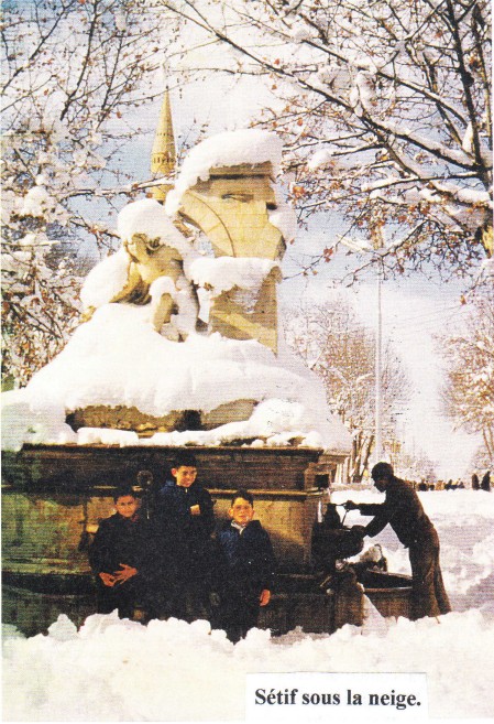 Le 2, la neige commença à tomber et atteignit dans la nuit une hauteur considérable. Dans la matinée elle cessa, le Général crut prudent de quitter immédiatement la montagne. Pour descendre dans la plaine, il n'y avait qu'un petit défilé de 1.500 mètres à traverser, mais ce passage difficile menaçait de devenir impraticable si la tempête reprenait. Vers sept heures du matin, la colonne profitant d'une embellie, se mit en mouvement. A la suite de I'avant-garde, la moitié de la colonne avait gagné la plaine, lorsque vers dix heures des rafales de neige poussées par un vent glacial, vinrent arrêter le dégel et rendre le défilé infranchissable. En un instant, les points les plus difficiles se couvrirent de glace et rendirent extrêmement laborieux le passage des bêtes de somme. La violence du vent, l’intensité des chutes de neige étaient telles qu'il était impossible d'entretenir des feux. L’horizon était entièrement obscurci à une distance de vingt pas. Dans cette situation il était impossible de faire remonter la colonne afin de reprendre le bivouac de la veille. Il eut été d'ailleurs très dangereux de rester dans une position où la neige s'amoncelait avec une extrême rapidité et où le soldat ne pouvait espérer de se chauffer aux feux du bivouac. On continua donc le passage dans le défilé, malgré Ies difficultés qui augmentaient à chaque instant. Le Général décida donc de diriger sa colonne sur Sétif, distant d'environ cinquante kilomètres.