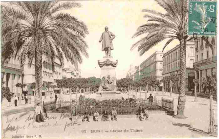Adolphe Thiers avait bien été le premier Président de cette République, mais ce n'était point pour cela que ces républicains de Bône avaient décidé d'honorer sa mémoire. Chacun savait, que comme Talleyrand, Thiers avait servi tous les régimes qui s'étaient succédé en France, de 1815 à 1877, date de sa mort, et qu'il n'était pas, par conséquent, un républicain bon teint.