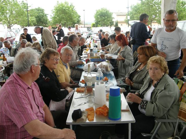 Avec un groupe d'amis, après notre dîner, nous sommes partis les derniers de Saint Quentin de la Poterie. Les organisateurs avaient fini de débarrasser le Marché couvert mis à notre disposition, mais ils n'avaient pas fini leur " soirée" car il fallait encore décharger et ranger le matériel dans les locaux à NÎMES afin de rendre très tôt les véhicules de location le lendemain matin. La très grosse majorité de ces organisateurs bénévoles et animés d'une foi inébranlable, ont entre 70 et 80 ans et ils étaient levés depuis 5 heures du matin. Y aura-t-il des jeunes pour les remplacer ?